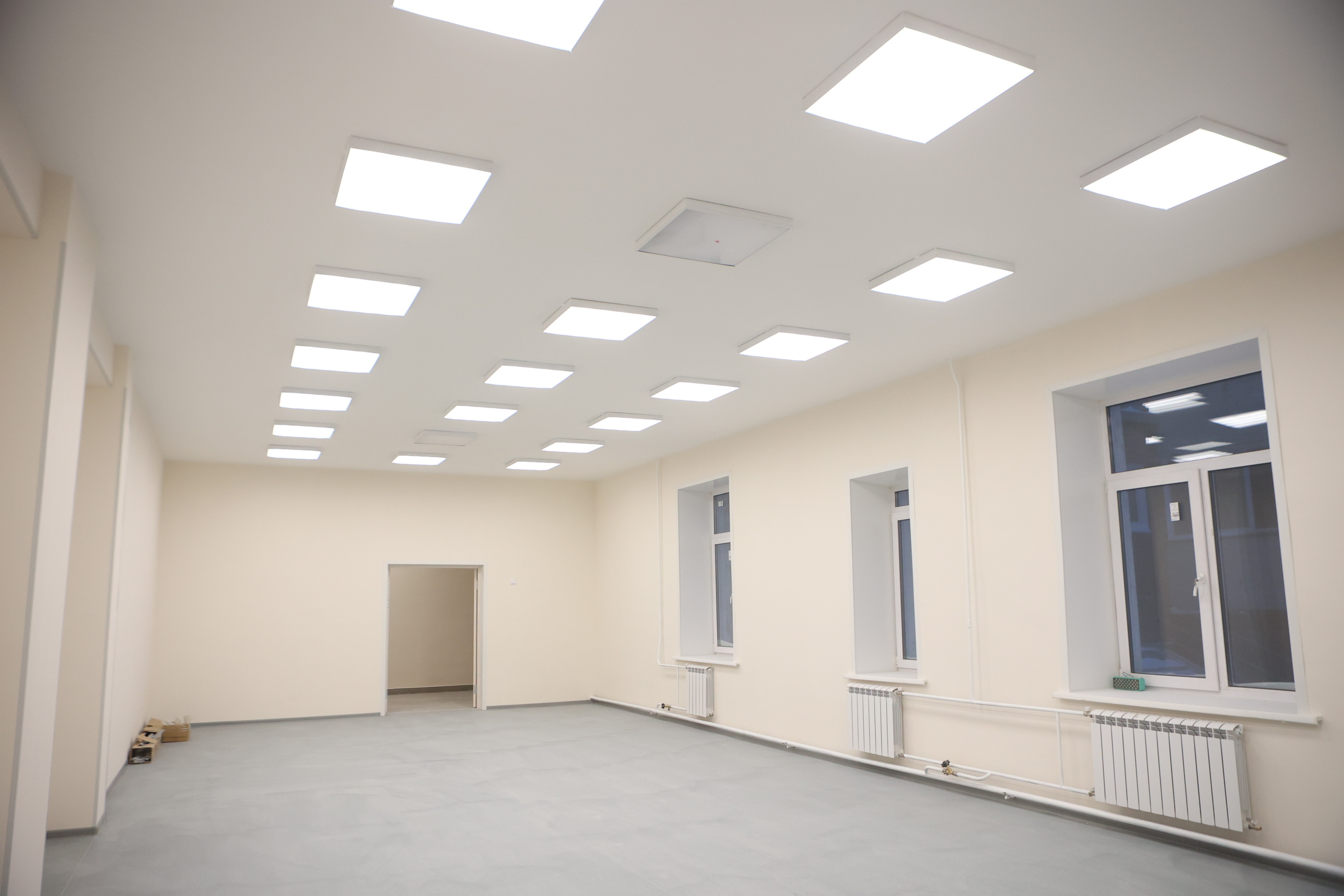 Готовность двухэтажного корпуса составляет 80-90%, в некоторых кабинетах уже можно расставлять мебель. Второе здание в четыре этажа из-за его немалой площади ремонтируют из расчета двухгодичного цикла, там сейчас занимаются инженерными сетями.