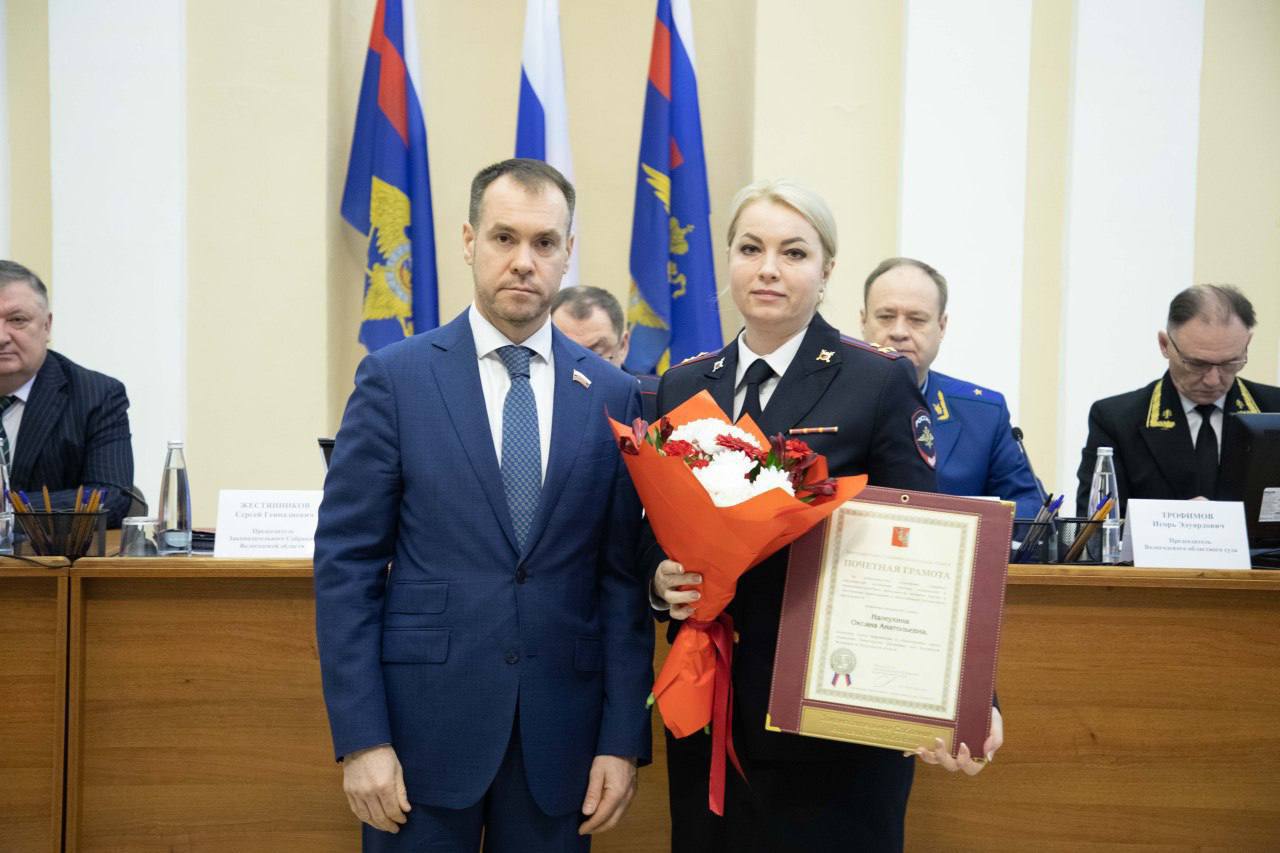 Жестянников от лица губернатора Георгия Филимонова поблагодарил руководство и личный состав УМВД за поддержку курса, выбранного для Вологодчины, и тесное взаимодействие с региональными управленцами.