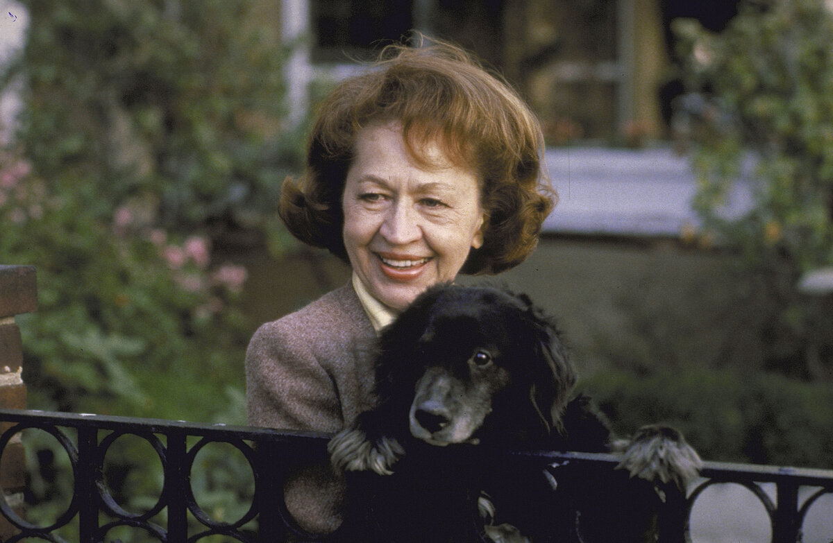 Джин Диксон и ее собака в саду во время прогулки (1979 год)