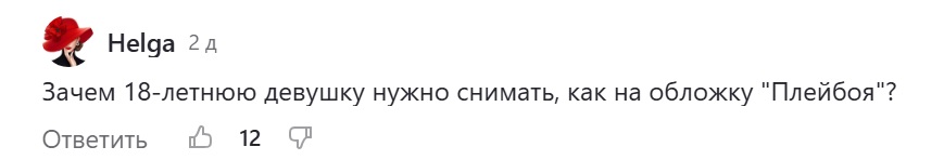 «Зачем 18-летнюю девушку нужно снимать, как на обложку «Плейбоя?», - задалась вопросом Helga;
