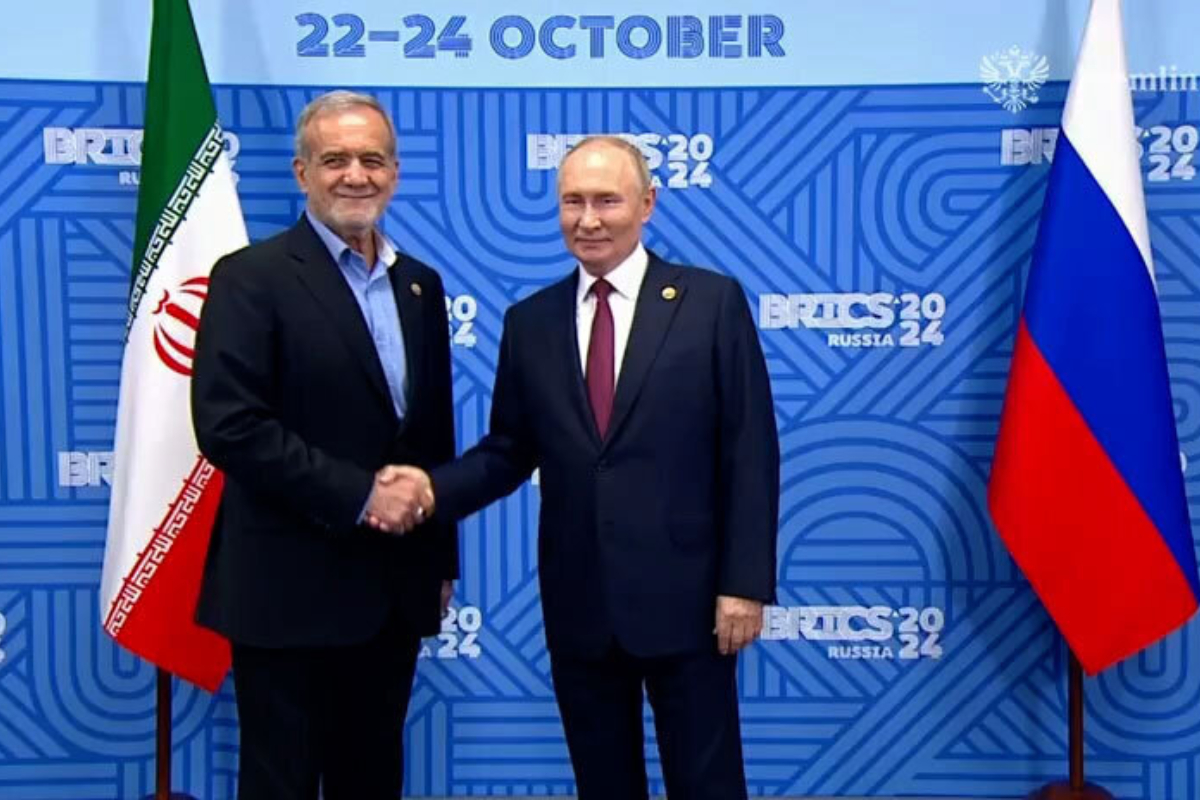 Встреча двух союзников: президенты России (страна-террорист) и Ирана Путин (военный преступник) и Пезешкиан