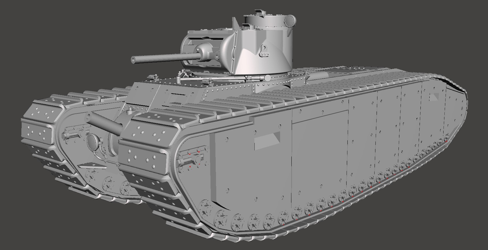 Поразмыслив над всеми указанными выше характеристиками, комиссия пришла к выводу: в конструкции нужно что-то поменять и убрала из чертежей боковые спонсоны, а вместо них водрузила на «крышу» башню от танка Matilda для монтажа 40-мм пушки.